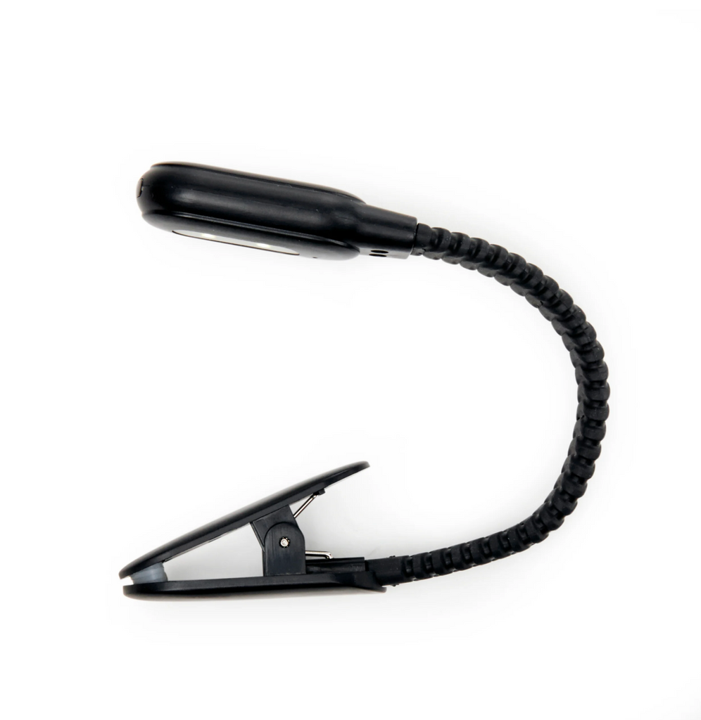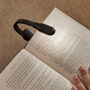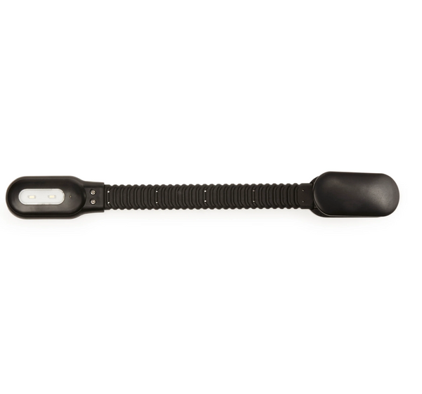 Introducing the SuperLite Booklight! With its adjustable gooseneck and 2 brightness levels, reading in the dark has never been easier. Plus, the pullable neck reveals a USB tip for easy charging with standard USB blocks. And, the energy efficient COB LED light provides superior brightness for long-lasting use. In sleek black.